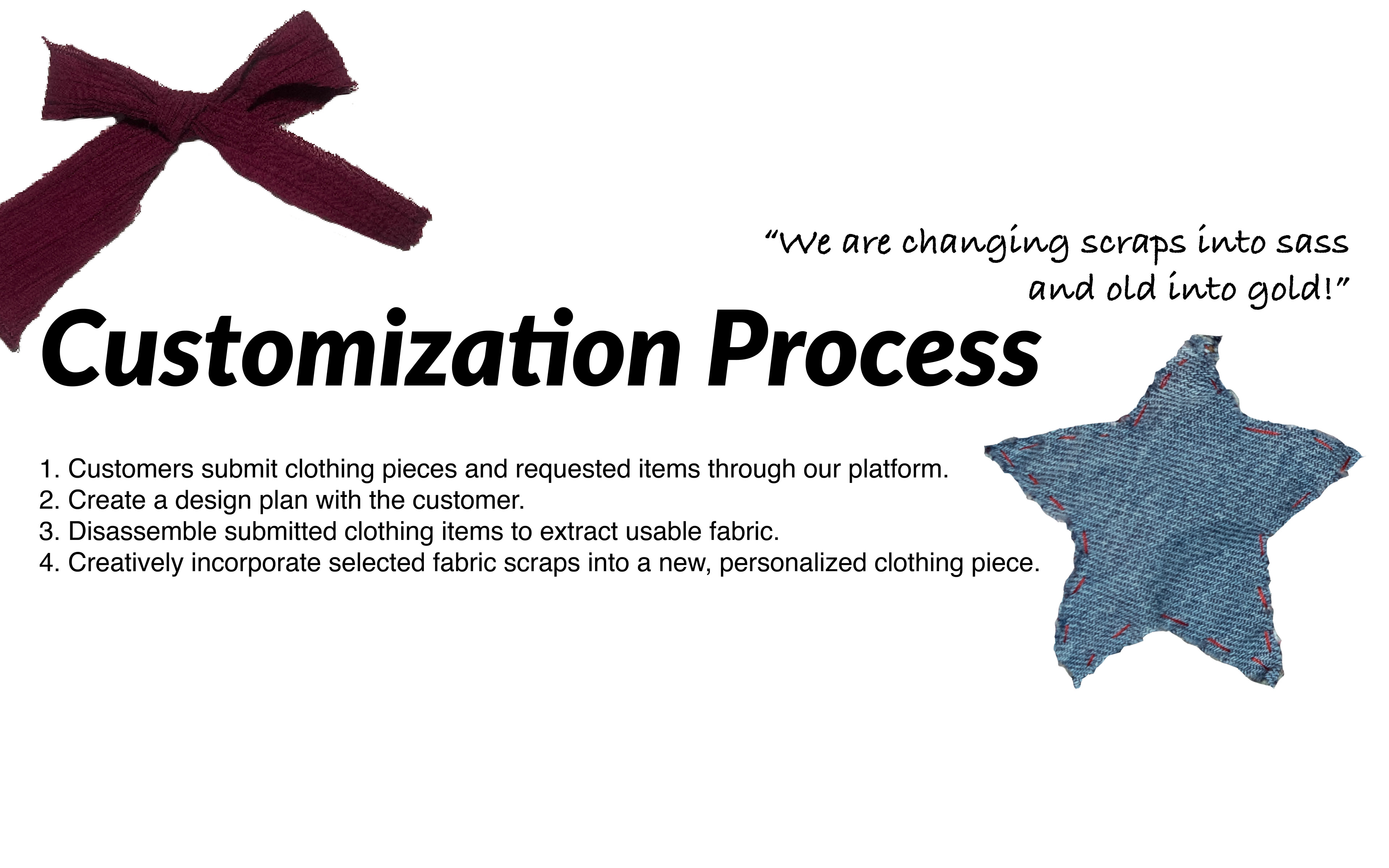 Each piece in our collection is meticulously hand-crafted using unwanted clothing pieces sourced from both my personal closet and local thrift stores. This not only gives new life to forgotten garments but also reduces the environmental impact of fashion waste.
