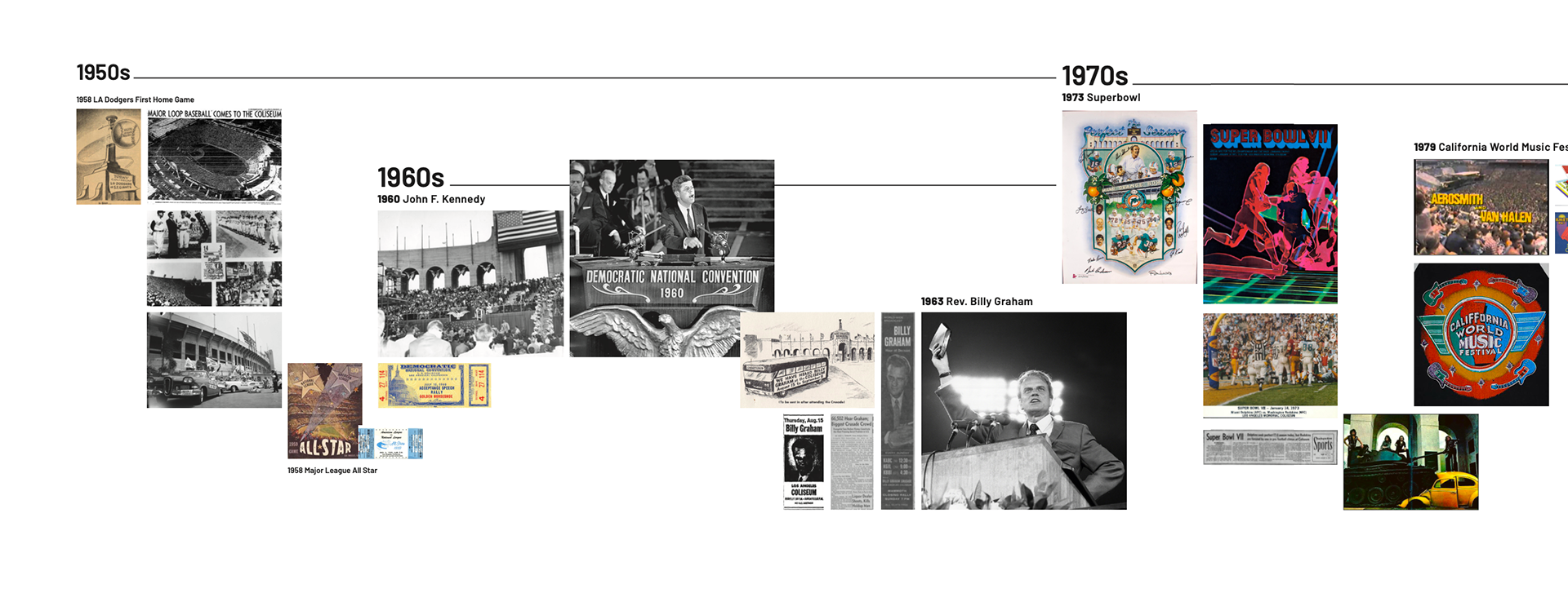 Thematic wall display (45.5" tall) that highlights key moments in the Coliseum’s history